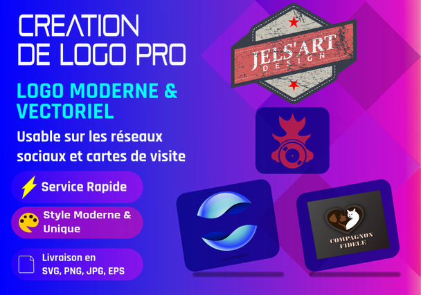 Vous êtes à la recherche d’une création de logo moderne, professionnelle et vectorielle qui donnera à votre marque une visibilité maximale et un impact immédiat ? Ne cherchez plus, vous êtes au bon endroit. Je suis Jean Eric, graphiste passionné et spécialisé dans la création de logo sur-mesure et vectoriel. Mon objectif est clair : transformer vos idées, vos valeurs et votre vision en une identité visuelle forte, mémorable et efficace grâce à une création de logo vectoriel qui vous démarquera de vos concurrents.