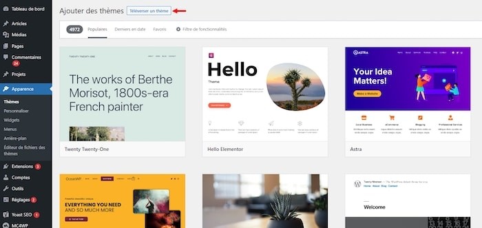 Choix d'un thème : Sélection d'un thème épuré qui met en avant le visuel.