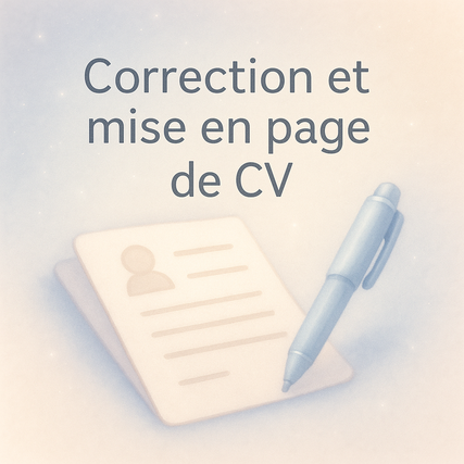 Mon service comprend la correction complète de vos documents (CV, lettres de motivation) avec une mise en page claire et professionnelle.