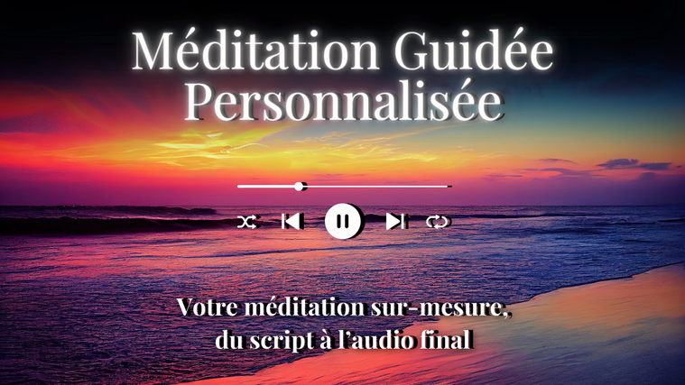 Une méditation guidée rien que pour vous : choisissez votre thème préféré (bien-être, respiration, ancrage, émotions, sommeil, enfant intérieur, amour de soi, spiritualité…) et la durée qui vous convient. Personnalisée avec votre prénom et vos intentions, pour un moment unique.