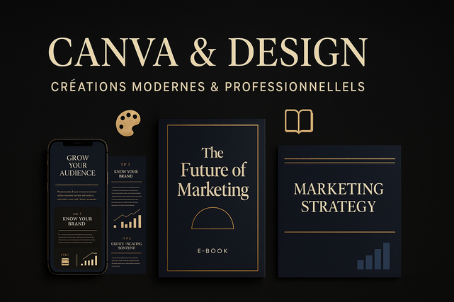 Avec mon service, vos visuels Canva deviennent modernes, professionnels et haut de gamme. Vous obtenez des designs qui attirent l’œil, inspirent confiance et reflètent parfaitement votre sérieux et votre image de marque.