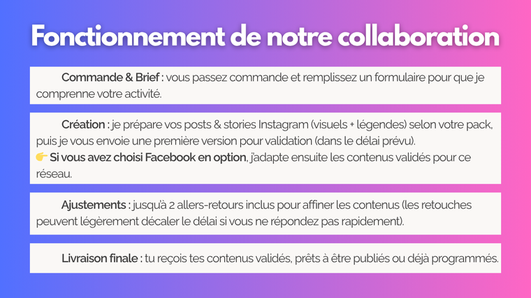 • Bonus : mini moodboard offert (couleurs + typographies), si vous n’avez pas d’identité visuelle