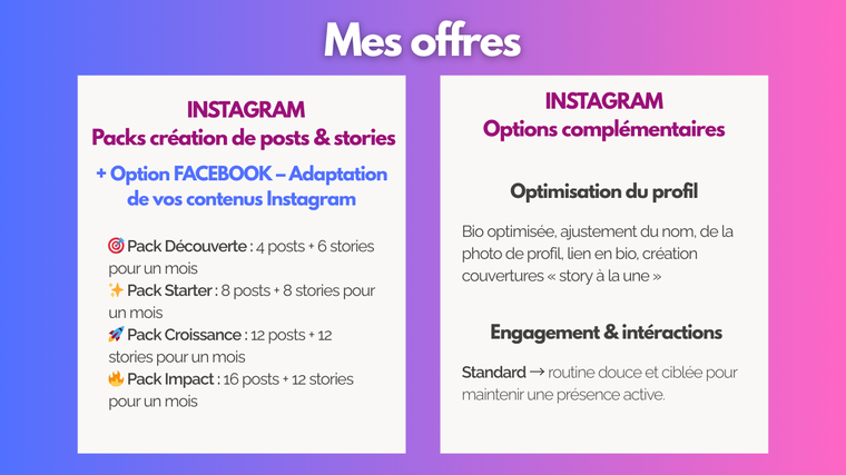 • Je réalise des visuels harmonieux adaptés aux réseaux, mais ce n’est pas un service de graphisme complexe.
