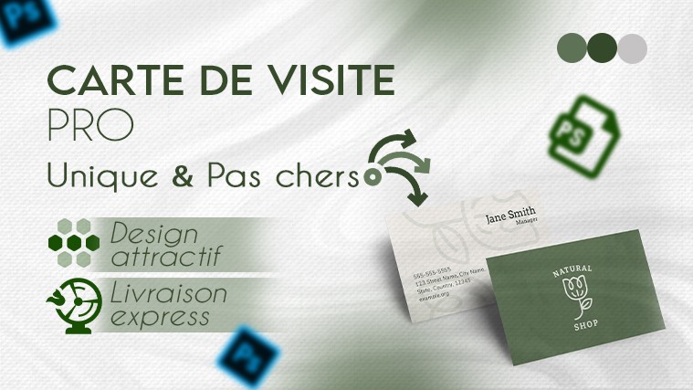 Pack Premium 2 propositions, Recto Verso, Ajout d’image de votre choix, Résolution qualité HD (300 dpi), 5 Retouches gratuites, fichiers PNG+JPEG+PDF, 1 mockup réaliste 58,71 $US 5 jours