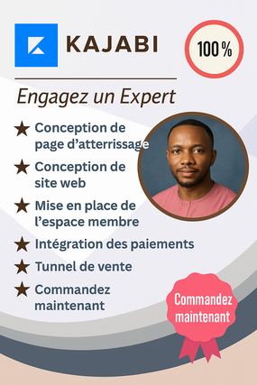 Expert Kajabi avec expérience confirmée dans la création de sites, pages d’atterrissage et formations en ligne