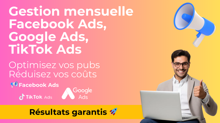 Je vais gérer vos campagnes publicitaires Facebook, Google et TikTok Ads
