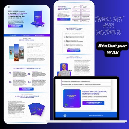 - Pages capture, remerciement, vente, commande, post-achat.