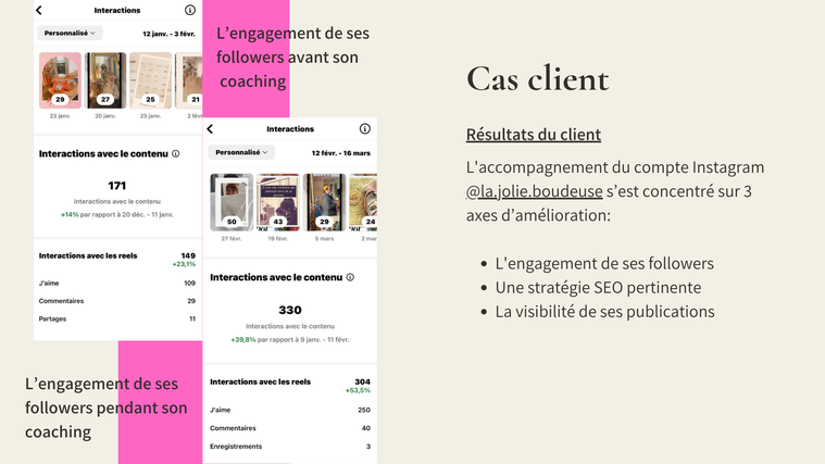 Je sais à quel point gérer un compte Instagram ou Facebook peut être chronophage quand on est déjà à 100 % sur son activité. C’est là que j’interviens.