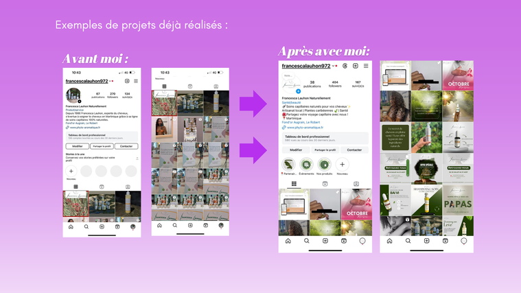 Laissez-moi vous aider à transformer vos idées en publications prêtes à poster, esthétiques, claires et engageantes.