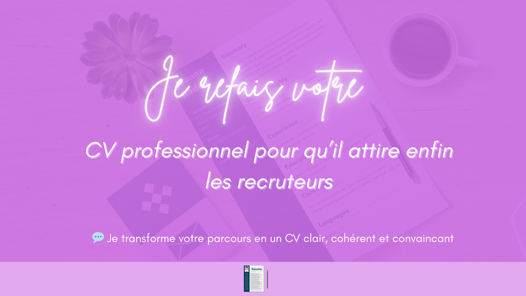 Ensemble, nous allons transformer votre parcours en un document clair, cohérent et vendeur — celui qui vous fera décrocher des entretiens !