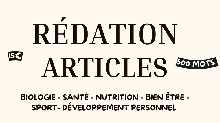 Pour 17,58 $US, je vais vous rédiger un article de 500 mots sur la thématique de votre choix (santé, nutrition, biologie, sport , développement personnel, bien être au naturel )