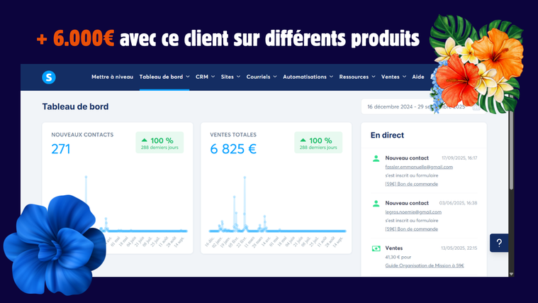 Sur le plan technique, tout est simplifié. L'**email marketing** part automatiquement, vos inscrits sont correctement tagués dans votre CRM, votre domaine est relié, et même votre calendrier est connecté. Vous n'avez rien à gérer, tout roule en arrière-plan grâce à **l'automatisation du marketing**. C'est plus de temps libéré pour vous concentrer sur votre métier, sans vous casser la tête avec la technique.