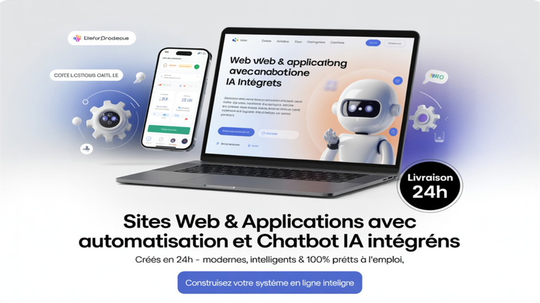 Je crée pour vous un site web + application mobile complète, dotés d’un chatbot IA intégré et d’automatisations puissantes, le tout en moins de 24H !