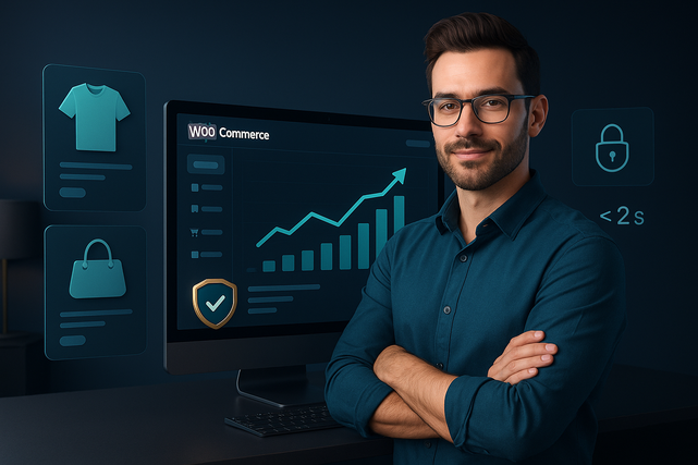 Boutique WooCommerce rapide, sécurisée et simple à gérer, livrée avec mon expérience de plus de 10 ans en création de sites web, WordPress et développement.