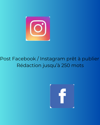 Je rédige vos posts Facebook ou Instagram impactants et prêts à publier, jusqu’à 200-250 mots.