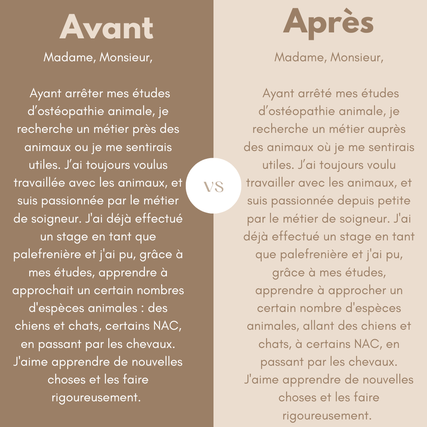 Je relis, corrige et reformule vos textes sans les dénaturer, pour qu’ils soient :
