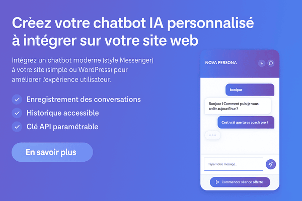 Je vais créer votre chatbot IA personnalisé à intégrer sur votre site web