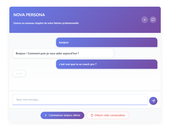 L’utilisateur peut revoir ses anciennes conversations, les supprimer individuellement ou vider l’historique complet en un clic.