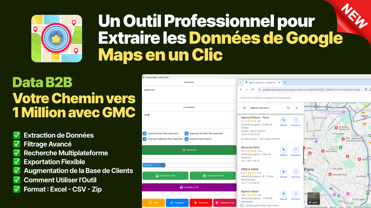 Collecte intelligente de données – Identifie rapidement des entreprises, clients ou partenaires pertinents selon ton activité.