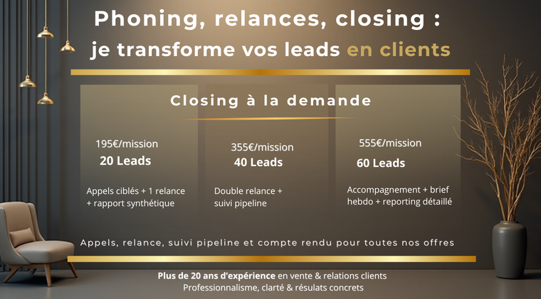 Je vais closer vos leads à distance avec méthode et stratégie commerciale sur mesure