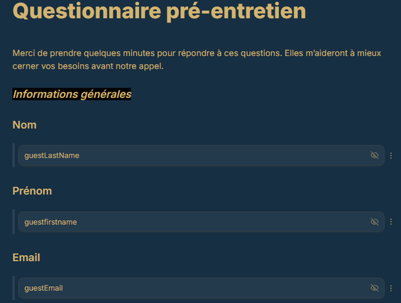 Tu recevras un formulaire prêt à l’emploi, un export des questions et un court guide pour exploiter les réponses. Mon objectif est que tu puisses interroger tes prospects et clients sans te soucier de la technique.