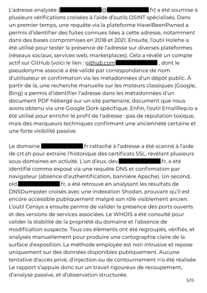 - Rapport OSINT complet (PDF), résumé exécutif, sources principales, et captures d’écran illustratives.