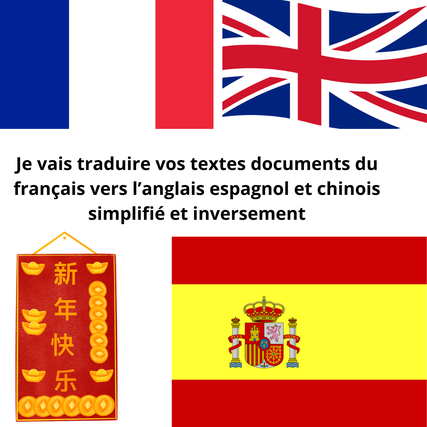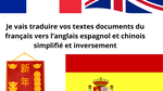 Je vais traduire vos textes documents du français vers langlais espagnol et chinois simplifié
