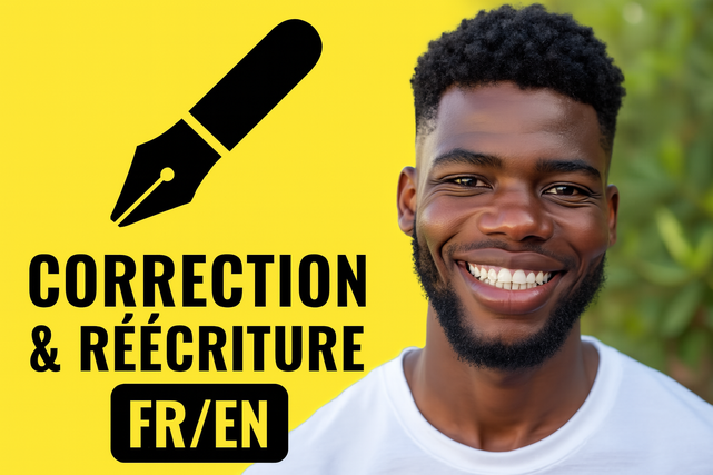 réécrivain et correcteur bilingue (FR/EN). Je prends vos textes tels qu’ils sont et je les transforme pour qu’ils soient impeccables, cohérents et agréables à lire. J’assure une réécriture stylistique quand le fond est bon mais la forme manque d’impact, et une correction rigoureuse quand il s’agit de supprimer fautes, maladresses et incohérences. Mon objectif: livrer un texte qui respecte votre intention et parle réellement à votre public.