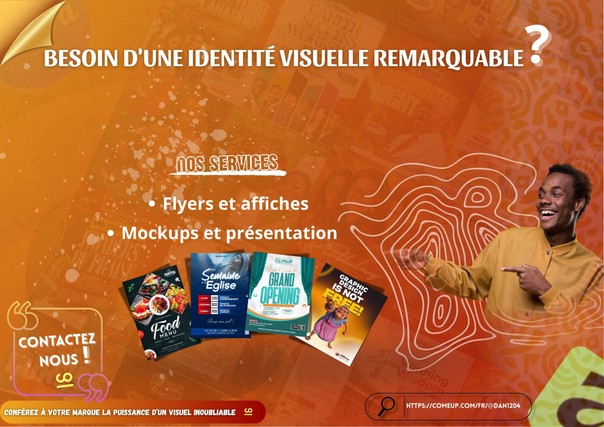 Bonjour et bienvenue sur mon profil ! Vous cherchez à transformer vos idées en visuels professionnels et captivants ? Je suis AZI Daniel, spécialisé dans la création d'identités visuelles fortes et de supports de communication percutants. Sur ComeUp, mon objectif est simple : vous fournir des solutions graphiques claires, créatives et efficaces qui répondent précisément à vos besoins. Mes domaines d'expertise : ☑ Webdesign & UI/UX : Maquettes de sites web et d'applications (Figma/Adobe XD), bannières publicitaires, visuels pour réseaux sociaux. ☑ Édition de Brochures, flyers, affiches, mises en page professionnelles. Pourquoi me faire confiance ? Je ne me contente pas de "faire joli". Je cherche à comprendre votre cible et vos objectifs pour créer un design qui fonctionne. Votre satisfaction est ma priorité. Je suis réactif, à l'écoute et je vous tiens informé(e) à chaque étape. Je m'engage à respecter les délais convenus et à fournir un travail de haute qualité. Je vous remercie de la confiance et attention faite à l’égard de mon professionnalisme. Merci!