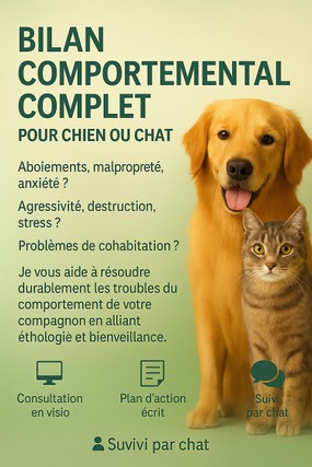 2. **CONSULTATION EN VISIO SUR ZOOM (45 min)** : Échange approfondi, analyse comportementale en direct, observation de l'environnement.