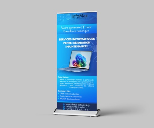 Bonjour et bienvenue ! Je vous propose un service complet de création de roll-up sur mesure, adapté à vos besoins, votre secteur d’activité et vos objectifs de communication.