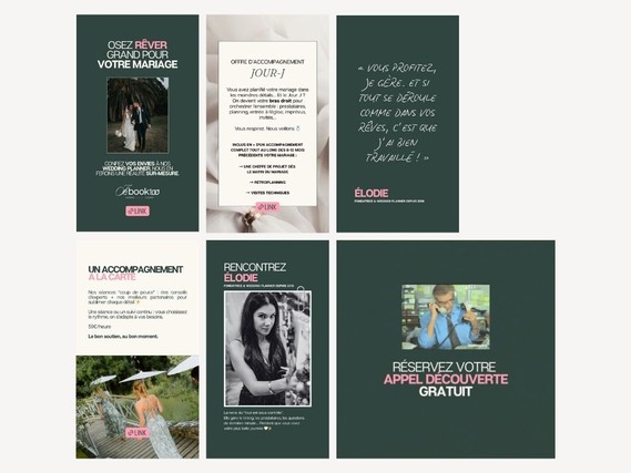 Parce que publier au hasard ne fonctionne pas, je travaille à partir de piliers éditoriaux solides et d’une charte graphique adaptée à votre marque. Votre compte devient reconnaissable, mémorable et orienté business.