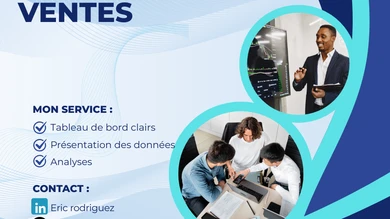 Bonjour , je m'appelle Eric , je suis spécialiser en analyse de vente et financière dans la création de tableau de bord claire .
