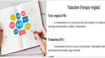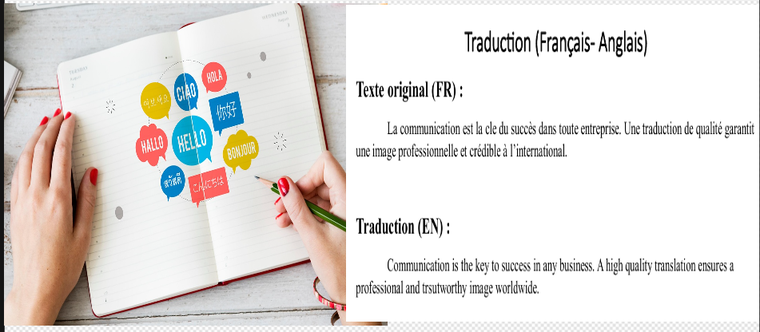 Je traduis manuellement vos documents entre le français et l'anglais, sans utiliser de traducteur automatique