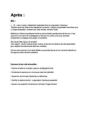 Mon rôle : écrire une bio claire, crédible et humaine, qui rassure et donne envie de découvrir vos livres.