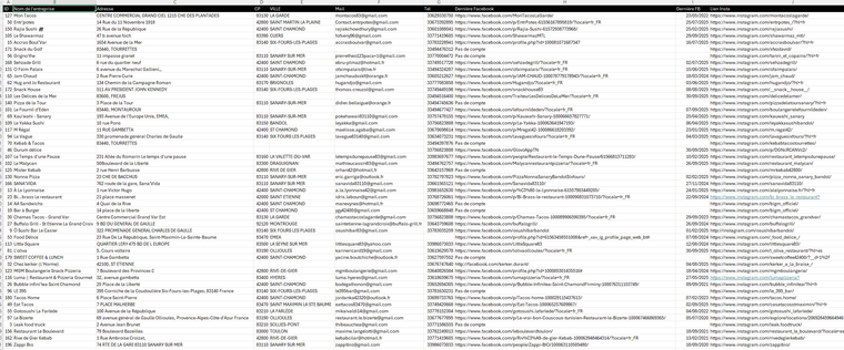 Je m'engage à vous fournir une base de qualité, structurée, exploitable immédiatement. Si une donnée vous semble manquante ou inadaptée, je m’engage à vous assister gratuitement pour ajuster le fichier selon votre besoin.