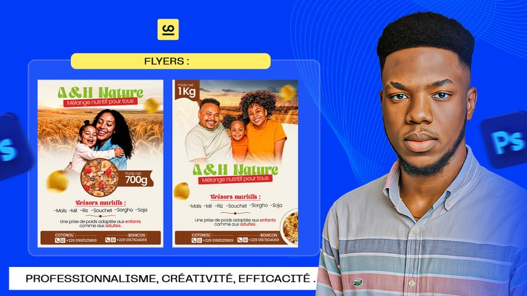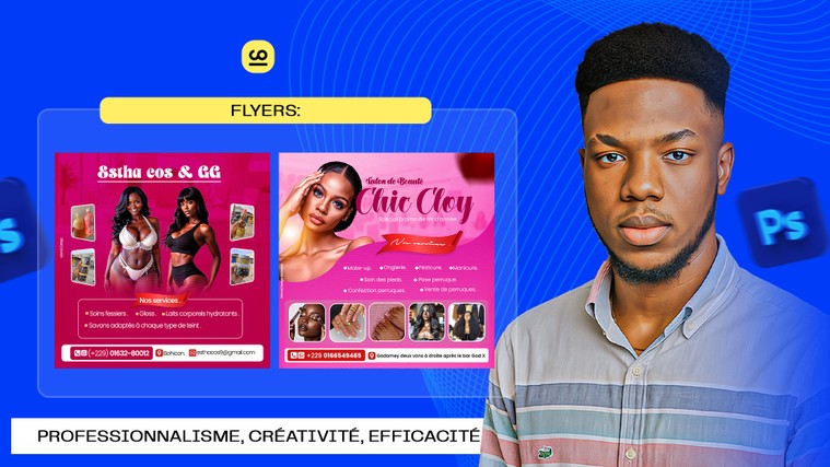 🎨 Graphiste Designer Professionnel – Créativité, Rapidité & Satisfaction Garantie Je vous aide à bâtir une image de marque élégante, moderne et percutante grâce à des designs soignés, professionnels et 100 % personnalisés. Chaque création que je réalise vise à refléter parfaitement l’identité et les valeurs de votre entreprise, tout en captivant votre public. Réactif et à l’écoute, je mets un point d’honneur à livrer un travail de haute qualité dans les meilleurs délais. Mon objectif est simple : vous offrir une expérience fluide, rapide et pleinement satisfaisante, du premier échange jusqu’à la livraison finale. Visuels publicitaires, flyers, affiches, présentations ou contenus digitaux — je transforme vos idées en créations impactantes qui vous démarquent.