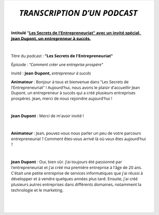 Je vais réaliser la transcription de votre fichier audio ou vidéo, podcast en texte