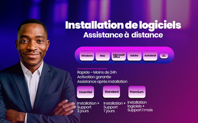 Je vous propose une installation rapide, sécurisée et à distance sur Windows ou Mac.