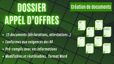 - la création des documents administratifs pour la réponse au appels d'offre avec vos informations d'entreprise - 158,29 $US