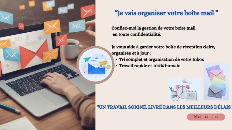 Je vous aide à retrouver le contrôle de votre messagerie en triant, classant et organisant vos e-mails de manière claire et méthodique :