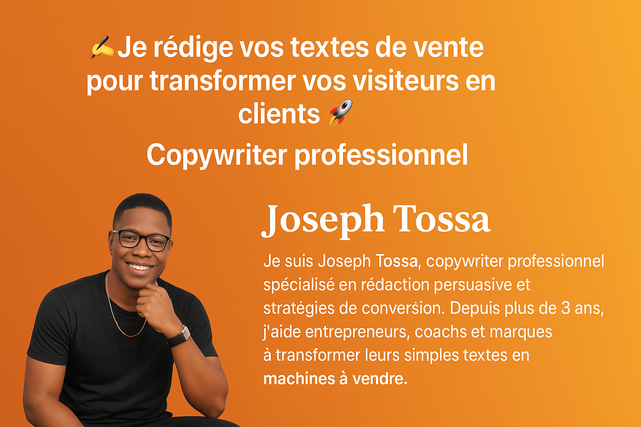 Je suis Joseph Tossa, copywriter professionnel spécialisé en rédaction persuasive et stratégies de conversion.