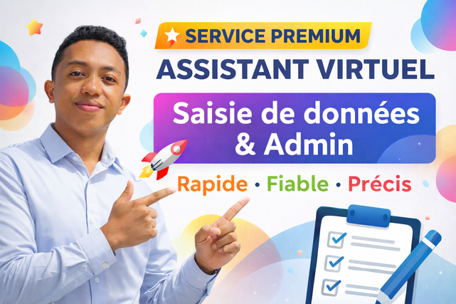 J’aide entrepreneurs, freelances et petites entreprises à gagner du temps en prenant en charge leurs tâches administratives et répétitives, avec sérieux, précision et respect des délais. 🎯 Ce que je peux faire pour vous : Saisie de données (Excel, Google Sheets) Copier-coller et mise en forme de documents Classement et organisation de fichiers Recherches en ligne simples Mise à jour de bases de données Tâches administratives à distance 🧠 Ma façon de travailler : Respect strict des consignes Travail propre, précis et structuré Communication claire et réactive Confidentialité assurée Livraison dans les délais convenus 📌 Sérieux, motivé et rigoureux, je m’investis pleinement dans chaque mission afin de fournir un travail professionnel, même sur des tâches simples. 📩 N’hésitez pas à me contacter avant commande pour expliquer votre besoin : je vous répondrai rapidement.