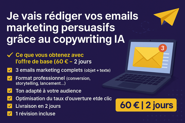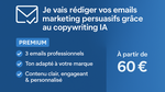 • 3 emails marketing complets (objet + texte)