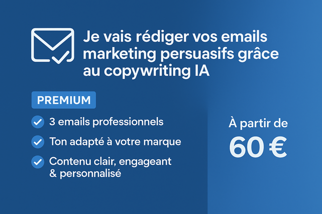 Je rédige pour vous des emails marketing persuasifs destinés à vendre, engager vos prospects ou lancer un produit.