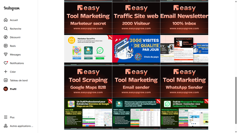 Nos Services La meilleure solution pour votre business 🎨 Identité Visuelle & Branding Nous créons une identité visuelle stratégique et professionnelle (logo, couleurs, typographie) afin de renforcer votre image de marque et assurer une cohérence visuelle forte sur tous vos supports de communication. 👉 Voir le service complet 🌍 Génération de Trafic Ciblé (Visiteurs Réels) Nous générons du trafic web réel, ciblé et qualifié, adapté à votre niche et à vos objectifs commerciaux, afin d’augmenter la visibilité, l’engagement et les conversions. 👉 Voir le service complet 📈 Data & Extraction de Leads (Google Maps) Nous proposons des solutions avancées pour extraire des leads professionnels 100 % qualifiés depuis Google Maps, idéales pour la prospection B2B locale et internationale. 👉 Extension Leads Scraper 👉 Voir le service complet ⚙️ Automatisation & Prospection Marketing Nous mettons en place des outils puissants pour automatiser votre prospection et vos campagnes marketing, réduire le travail manuel et améliorer vos performances commerciales. 👉 Voir le service complet 💻 Développement Web – Sites sur mesure Nous concevons des sites web modernes, rapides et entièrement personnalisés, pensés pour offrir une excellente expérience utilisateur et maximiser la conversion. 👉 Site web sur mesure HTML5 / CSS3 / JS 👉 Site e-commerce connecté à WhatsApp Business 🤖 ChatBot IA Personnalisé – 24/7 Nous concevons des chatbots IA intelligents et personnalisés, capables de répondre automatiquement aux visiteurs, qualifier les leads et améliorer l’expérience client 24h/24 et 7j/7. 👉 Voir le service complet ✉️ Email Marketing Automatisé Nous mettons en place des solutions d’email marketing automatisées pour prospecter, convertir et fidéliser vos clients, tout en augmentant vos taux d’ouverture et de conversion. 👉 Voir le service complet 📲 WhatsApp Marketing Automatisé Nous déployons des programmes d’automatisation WhatsApp pour vos campagnes marketing, permettant l’envoi ciblé et personnalisé de messages à fort taux d’engagement. 👉 Voir le service complet 🎥 YouTube – Création & Optimisation de Chaîne Nous créons et optimisons entièrement votre chaîne YouTube professionnelle afin d’améliorer votre visibilité, votre crédibilité et votre croissance organique. 👉 Voir le service complet 📱 Réseaux Sociaux – Contenu & Optimisation Nous concevons des contenus modernes, créatifs et optimisés pour renforcer votre présence sur les réseaux sociaux et engager efficacement votre audience. 👉 Posts réseaux sociaux – Design & contenu 👉 Optimisation page LinkedIn professionnelle 👉 Optimisation compte Instagram professionnel