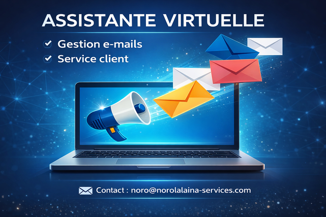 Je traite vos courriels, je réponds à vos clients et je gère votre back-office pour une assistance professionnelle et fluide.
