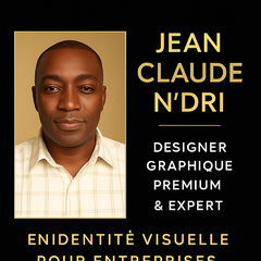 Je suis Jean-Claude N’Dri, Designer Graphique Premium spécialisé dans la création de logos professionnels, d’identités visuelles complètes et de branding pour entreprises.