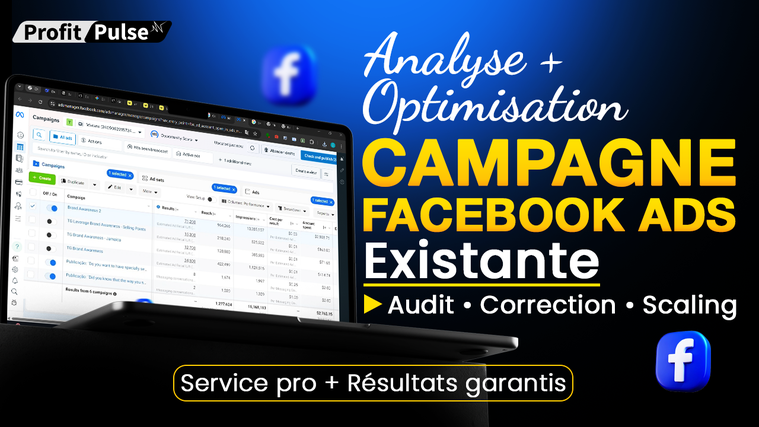 ### Maximisez la performance de vos campagnes Facebook Ads grâce à une analyse détaillée, des corrections stratégiques et un scaling efficace.