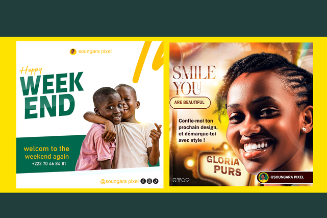 Je me nomme Soungara, infographiste professionnel passionné, reconnu pour ma rigueur, ma créativité et ma maîtrise experte des logiciels de la suite Adobe. Fort de plusieurs années d’expérience, j’ai collaboré avec des agences de communication, entreprises, particuliers, influenceurs et médias, contribuant à la réussite de nombreux projets visuels. Mon engagement : créer des designs originaux, percutants et soigneusement élaborés, avec un souci du détail au pixel près. Chaque visuel est pensé pour valoriser votre image, renforcer l’impact de votre message et maximiser votre visibilité. Chez Soungara pixel, vous trouverez une gamme complète de services graphiques, adaptés à vos besoins spécifiques, pour faire rayonner votre marque ou votre projet avec professionnalisme et excellence.